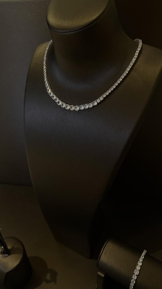 طقم تنس دقة الماس ناعم و مريح مكون من اربع قطع ( عقد و حلق و اسوارة و خاتم ) مطابق للمعة الالماس بمدعم بطبقات مقاومة لتغير اللون لاطلالة جذابة في ليلة العمر و المناسبات المهمة ضمان على الجودة العالية و اللمعة ( يشمل باكيج فاخر لحفظ القطعة من التلف )